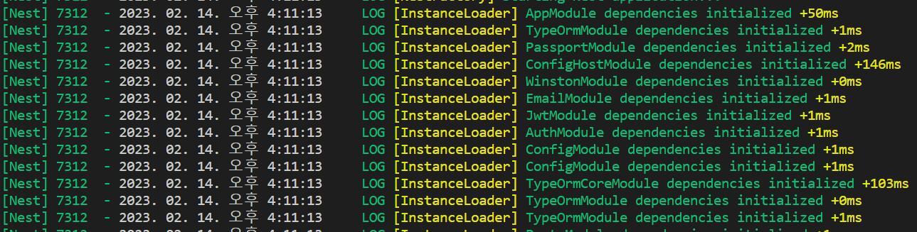 하지만 아직 부트스트래핑 과정(모듈, 프로바이더, 의존성 주입 등의 초기화)에서는 Winston Logger 사용이 불가하다.